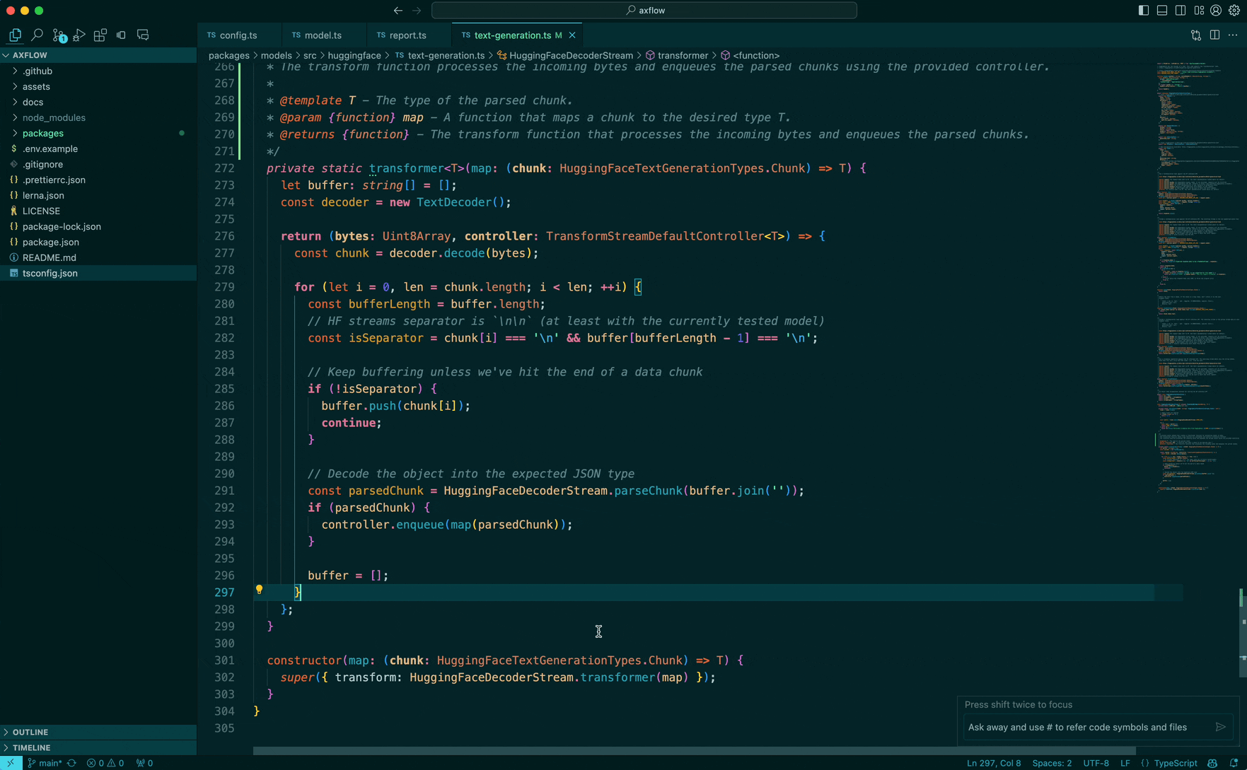 we basically accumulate the delta until we hit a newline character and generate a stream of lines to work with.