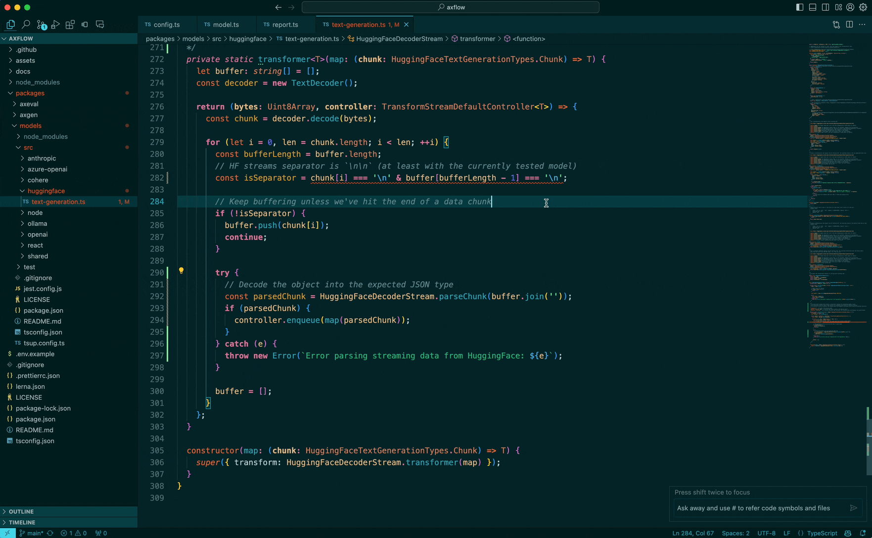 Great! so we got the LLM to output code, but we are not done yet, the magic of how LLMs work is that they stream their answer, can we start working quickly and decipher how the code has changed and what edits we have to make?